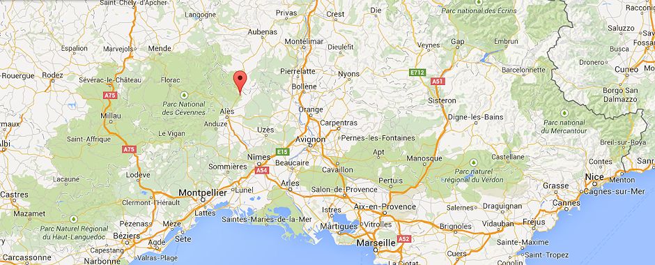 Saint-Ambroix (elke Dinsdag markt) en ca. 15 minuten van de stad Alės.